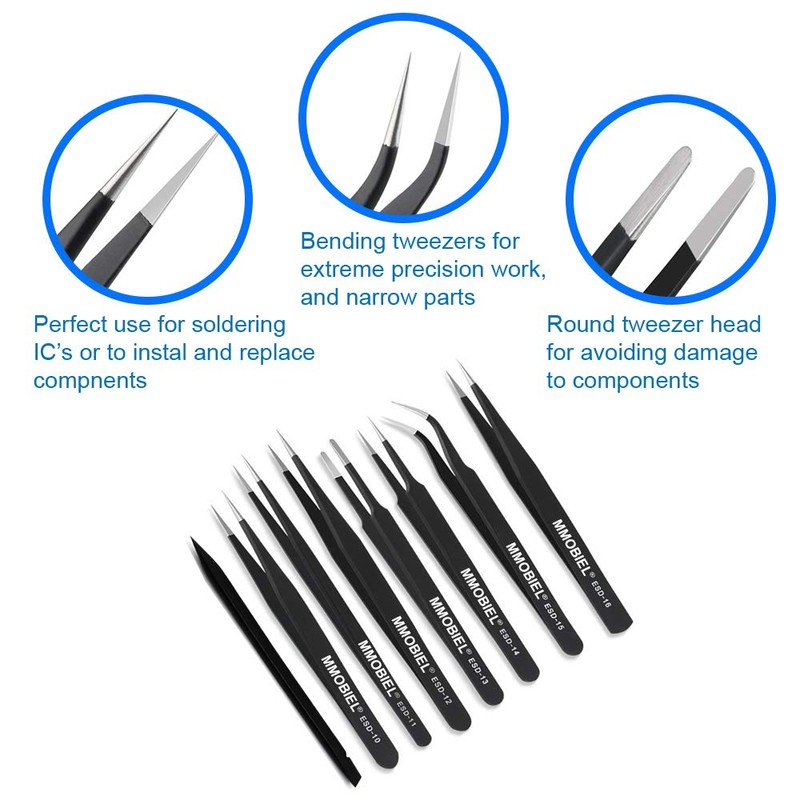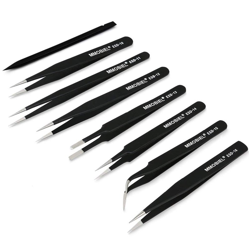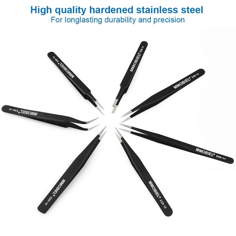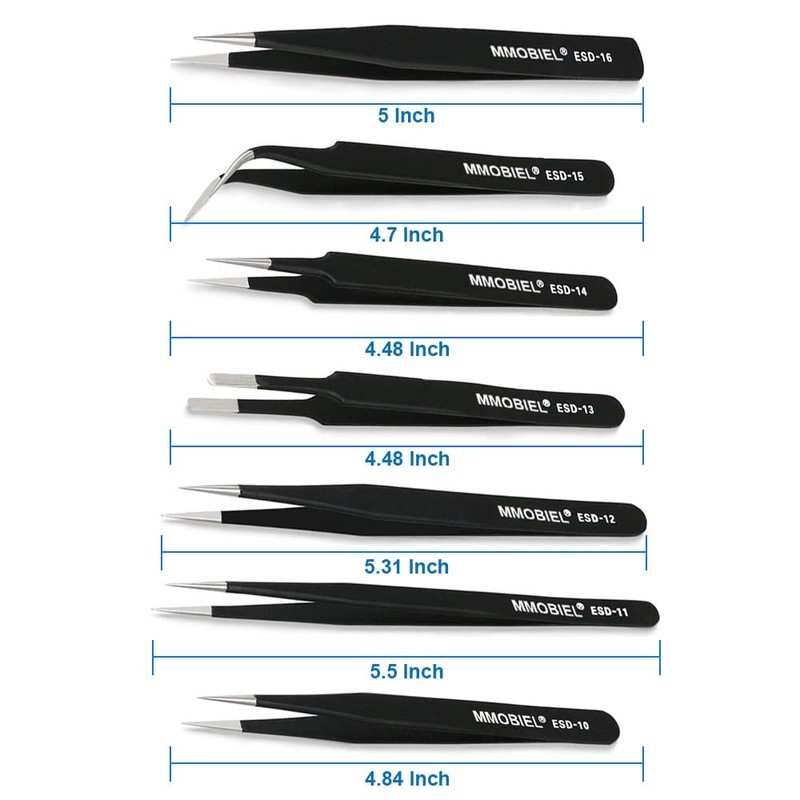 - MMOBIEL 7 x Industrial Precision ESD Tweezers Anti-Static Stainless Steel for Electronics Tools, Jewelry, Computer, Laboratory Work and Hobbies etc.