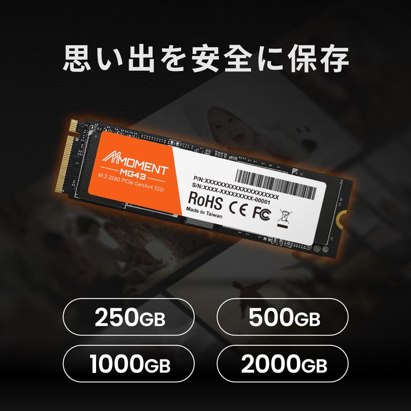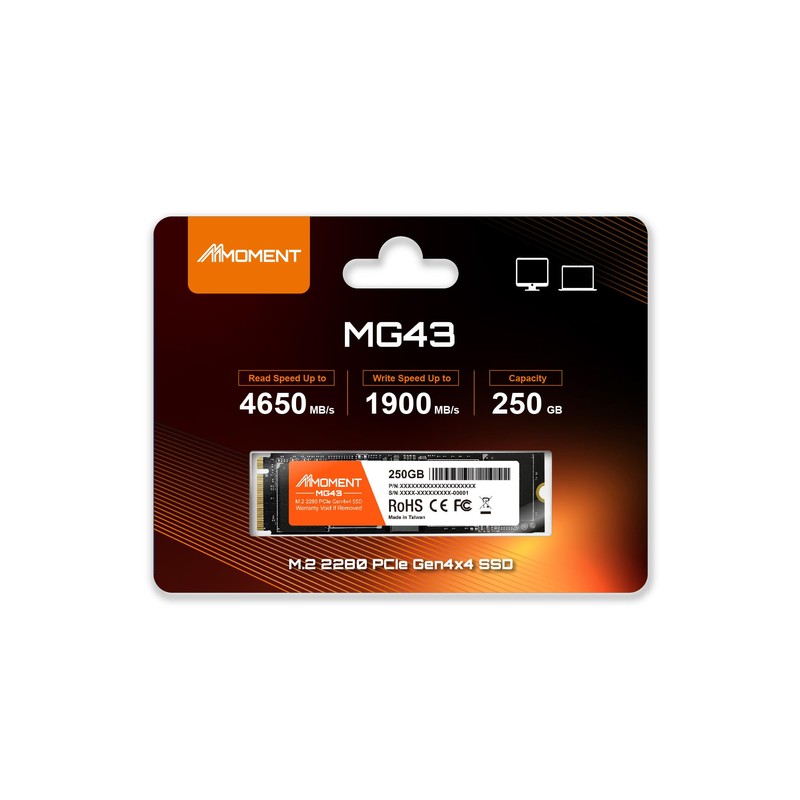 MMOMENT MG43 250GB M.2 2280 PCIe Gen4 NVMe 1.4 Internal SSD, Solid State Drive, Read Speed Up to 4650MB/s Storage for PC, Laptops, Gaming
