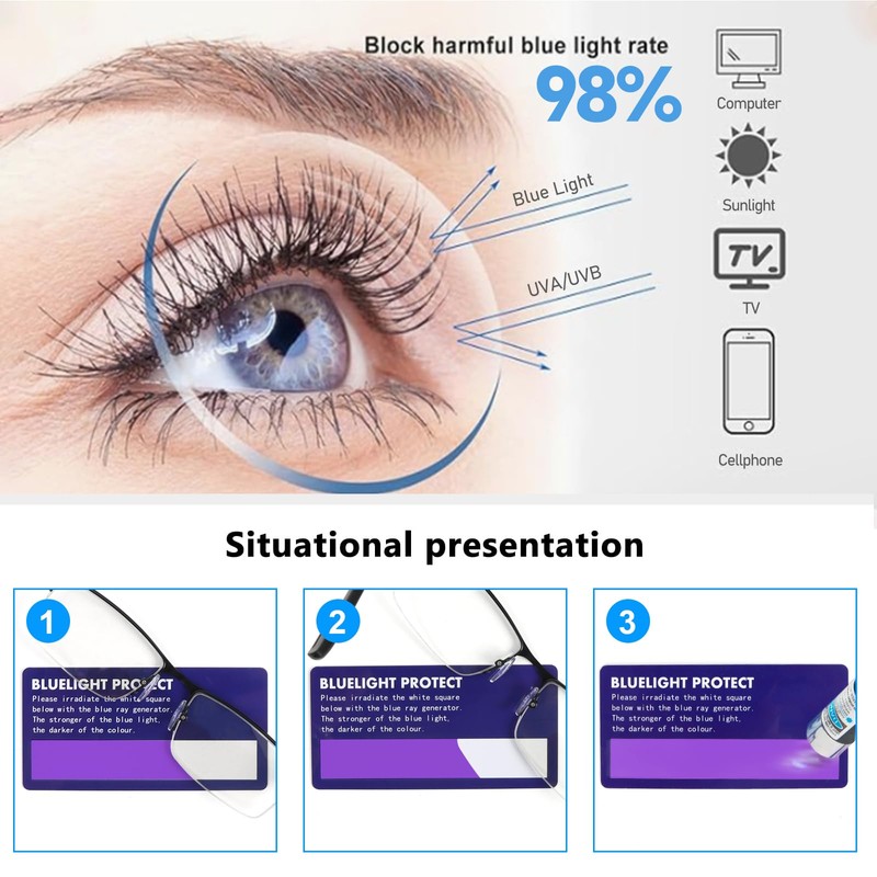 - BLUE LIGHT BLOCKING: The lens can filter harmful blue light, effectively reduce the harmful blue light damage to the eyes when using electronic devices for a long time, relieve eye fatigue and protect the health of eyesight