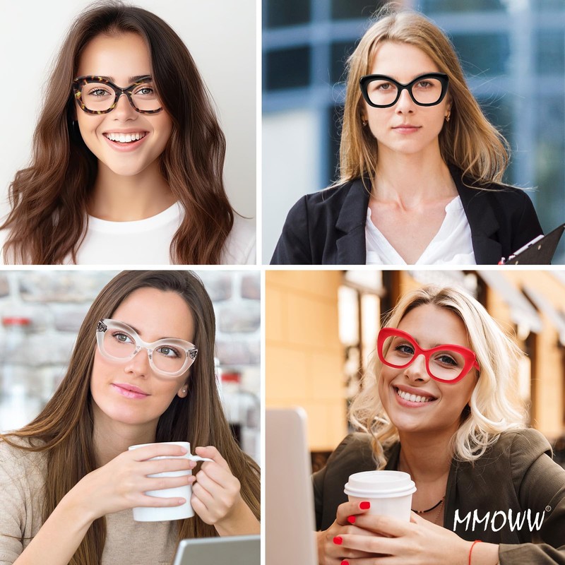 - [Get 4 sets of readers] You will receive 4 sets of anti blue light reading glasses, which are suitable for you to wear anywhere, and can also be paired with various clothing anytime, anywhere. Make you the most fashionable person.