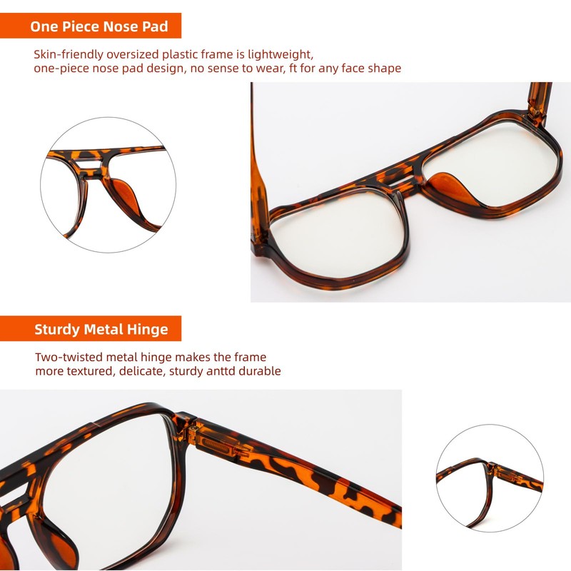 - [Stylish Aviator Oversized Design] These blue light filter glasses feature a trendy and fashionable oversized square lightweight frame, follow the 70s Classic eyewear design, making you look more stylish while protecting your eyes. Perfect for use at home, office, in the car, or your favorite reading area.