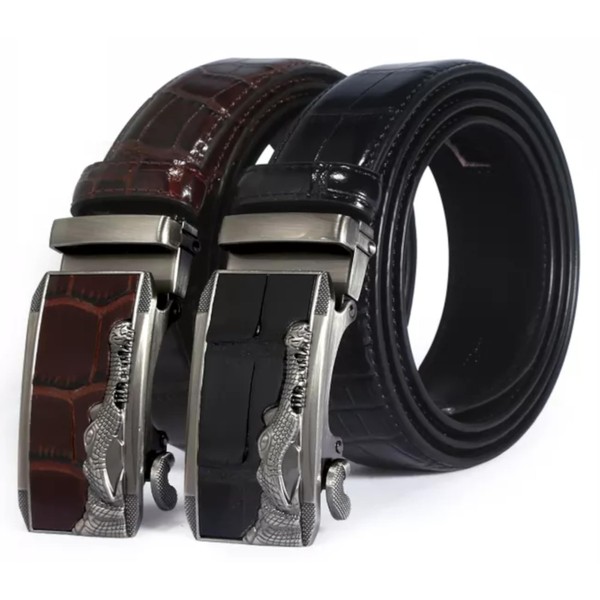 MNA Styles Mens Belt 2 Pack, Leather Belts Ratchet Automatic Sliding Buckle, Adjustable Casual Dress Jean Belt, Fits All (Black/Coffee)