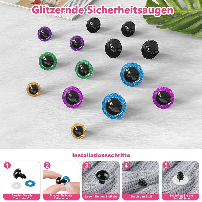 - 【DIY Handmade Doll】Our chenille yarn set contains colorful plastic safety eyes (14 pieces) in different sizes and eye types to meet your different needs. Sparkling eyes bring your handmade plush doll, soft toy or crafts to life.