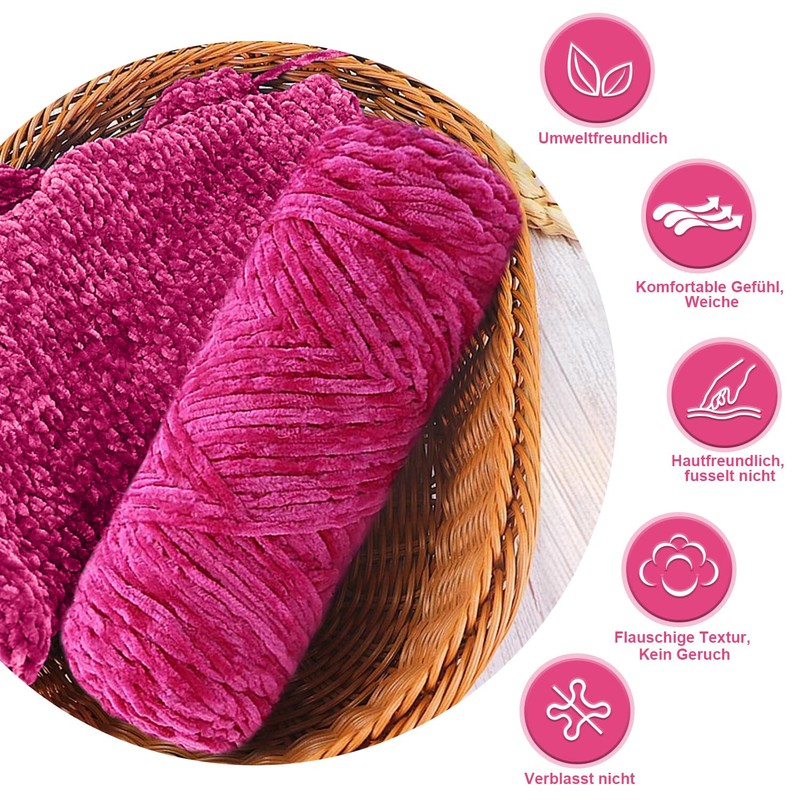 ✅ This soft chenille knitting yarn feels comfortable, is rich in pile and has a vibrant colour. Soft and comfortable chenille yarn is very suitable for knitting and crocheting clothes, making blankets, hats, scarves, sweaters, pet beds, etc.