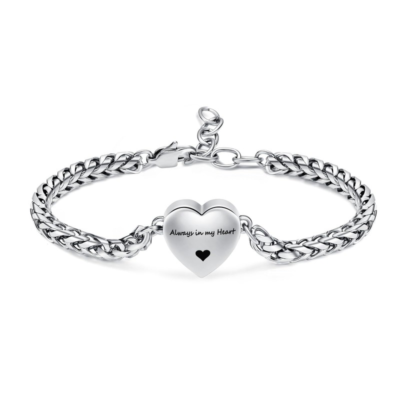 Mnicremation Urn Bracelet for Ashes Heart Locket Cremation Bracelet Memorial Adjustable Ash Link Holder Bangle Link Chain Women - Always in my heart, Stainless Steel, No Gemstone