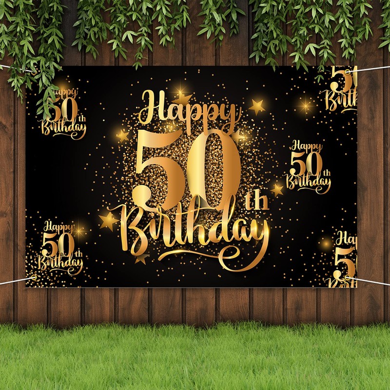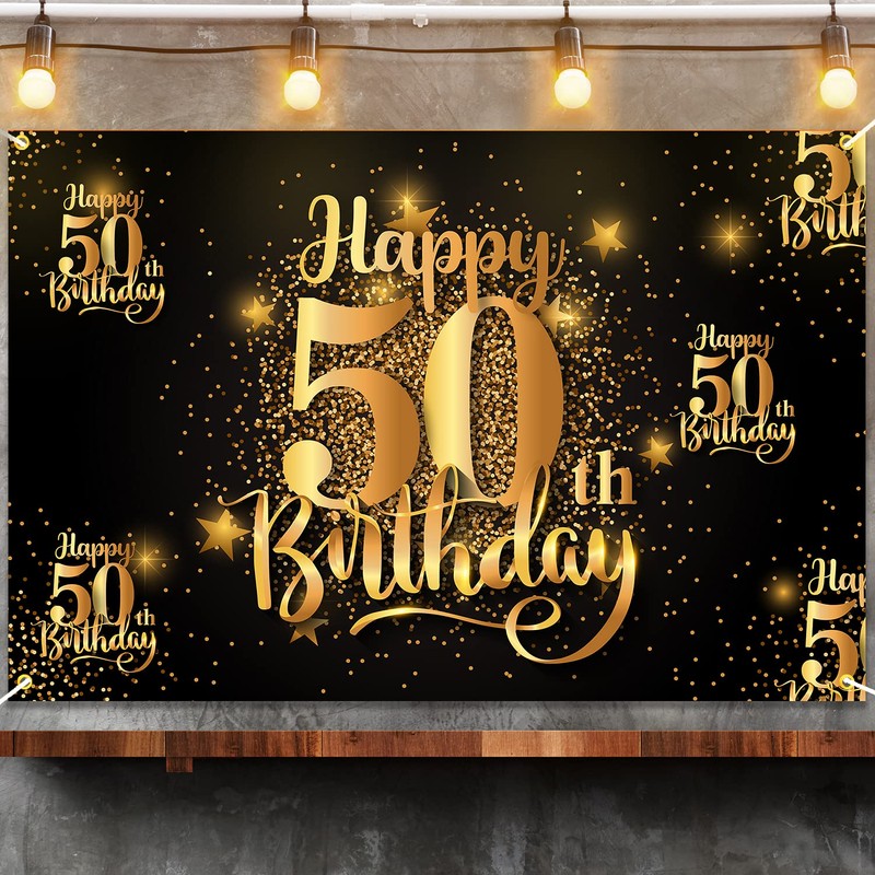 Mnixy Happy 50th Birthday Backdrop Banner Step and Repeat 50 Years Old Background Decorations for Women Men Her Him Photography Party Supplies Glitter Black Gold (1)