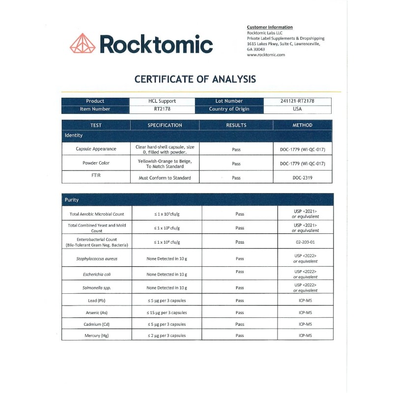 Manufactured in the USA at FDA-registered and GMP-certified facilities, PRO-HCL represents the pinnacle of supplement quality. Only 1% of supplements on the market achieve this level of certification and excellence.