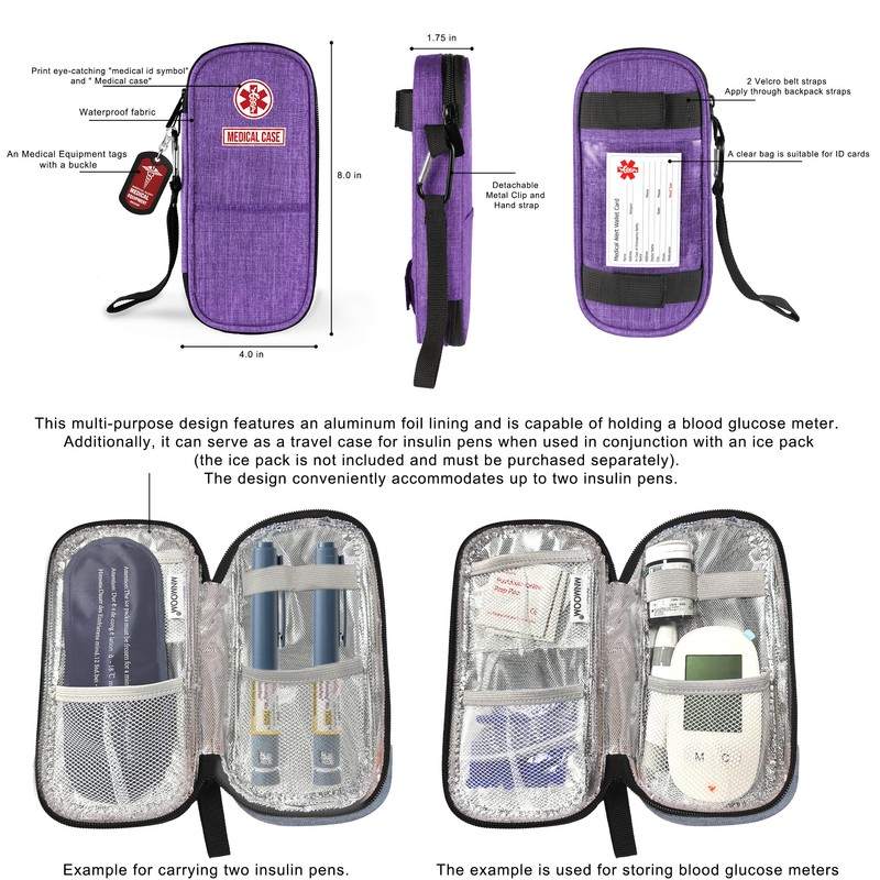 - Complete Travel Kit with Bonus Safety AccessoriesIncludes: (1) Insulated diabetic case, (2) Medical Equipment zipper tag, (3) Emergency info card.Achieve comprehensive protection for your diabetes testing kit anywhere.