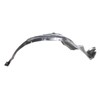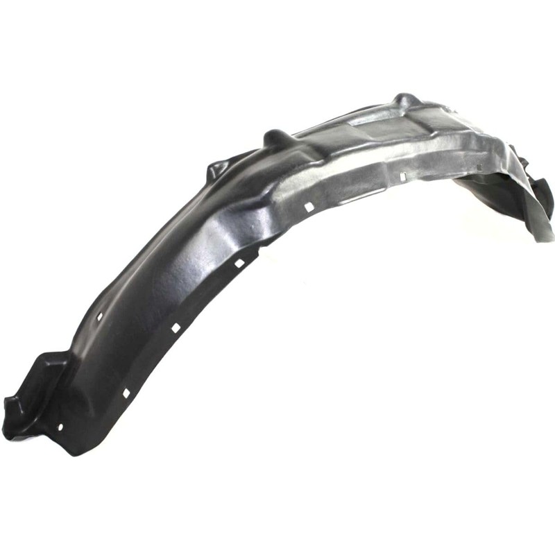 This product a protective automotive shield designed specifically for the wheel well area of a vehicle engineered as interior panel that attaches to the front right side of the chassis, positioned behind the tire to form a barrier between mechanical components and external elements The part custom-molded to match the exact contours of the applicable vehicle model, ensuring seamless integration with existing structures Crafted from, flexible materials reinforced plastic or composite polymers, combines resilience with properties