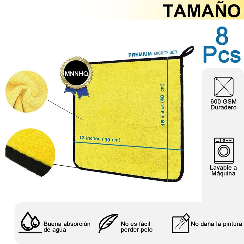 MNNHQ 8 Piezas Toallas de Limpieza de Microfibr, Trapos de Limpieza Profesional Grueso para Automóviles, Paño de Limpieza Suaves Ultra Absorbentes Adecuadas para Auto, Ventanas, Cocina y Hogar