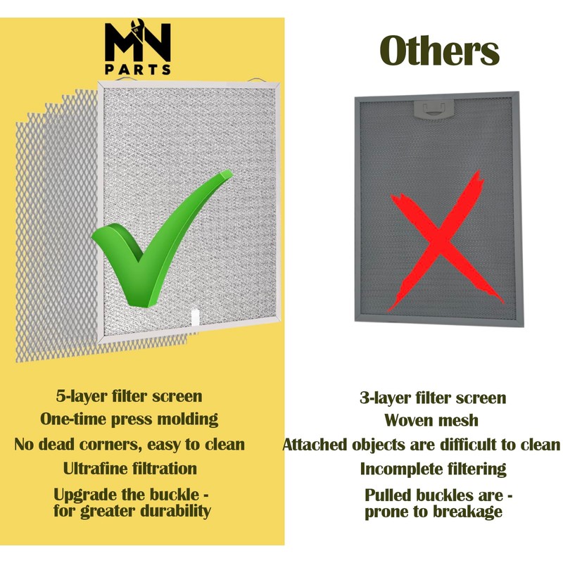 - Quality –Range Hood Grease Filter Compatible S99010430-003, 99010430-003 Aluminum mesh filter is made of high quality 5-layer filter mesh for Maximum Filtration and Extra Durability. there are Overlapping Joints to Stop Snagging and Tension Springs for a Compressed Fit. the Pull Tab on the Short Side is to Assist in Easy Removal and Install.
