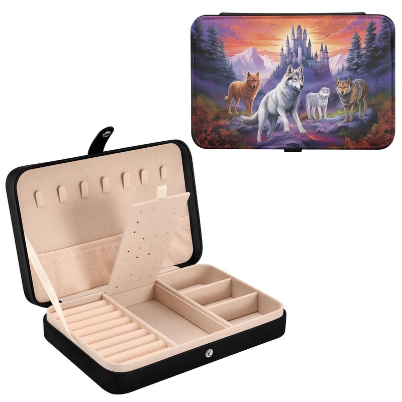 Mnsruu Wolf Leather Jewelry Box, Wolf Necklace Ring Earrings Storage Organizer for Women Travel Jewelry Organizer