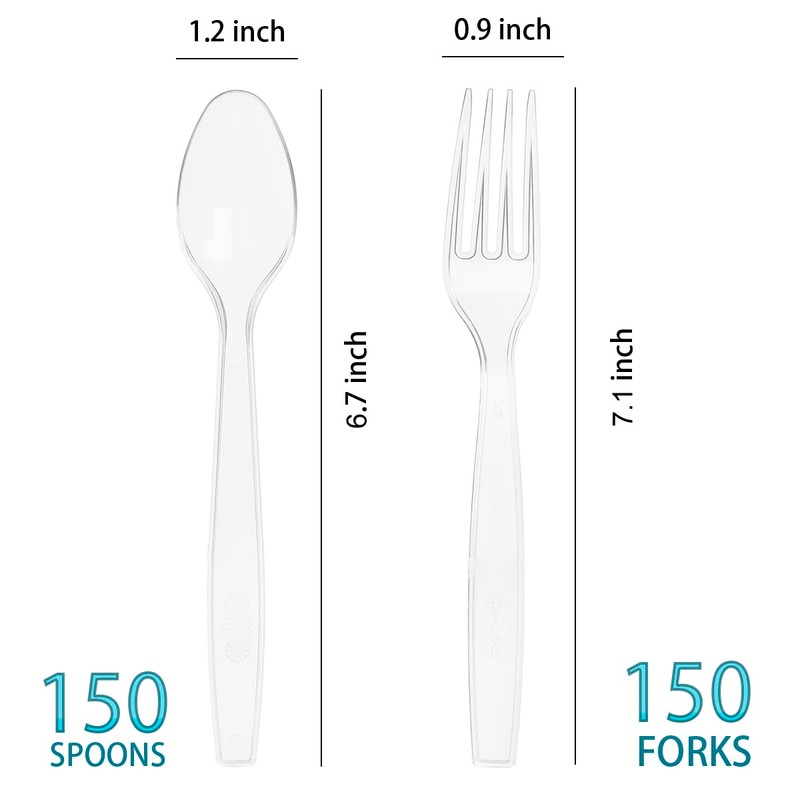 - Over-Valued Pack of 300: The package of this plastic silverware set includes 150pcs plastic forks, 150pcs plastic spoons, making the set great for large gatherings and events. Ensuring you with enough quantity to accommodate all.
