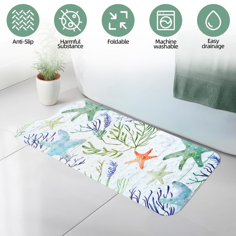 - 【Attractive Design】Featuring charming starfish and seaweed patterns, our non slip bath mats for inside bath adds a touch of individuality and charm to your bathroom. Perfect for adults and children alike, this non slip bath mat encourages imaginative play and enhances your bathroom decor.