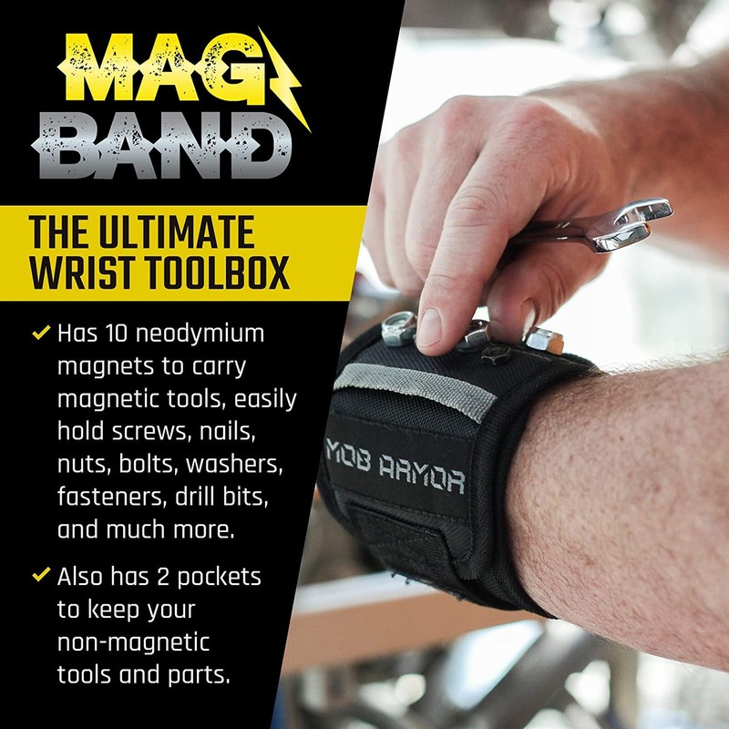Mob Armor Mag Band Magnetic Wrist Tool Holder - Magnetic Wristband for Holding Screws, Nails, Fasteners, and More, Magnetic Wristband for Mechanic, Handyman, Electrician, Tech Geek, 13" x 3.25"