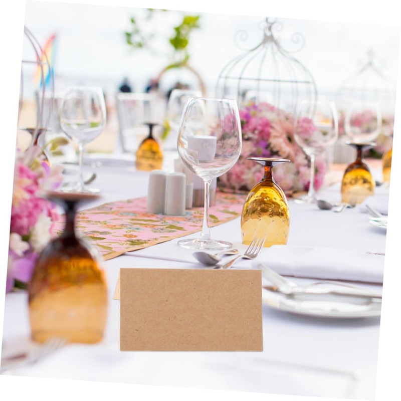 Mobestech 100pcs Blank Name Plates for Weddings Table Cards for Banquet Settings Self Standing Place Cards for Birthday Parties DIY Table Decor Brown Cardstock