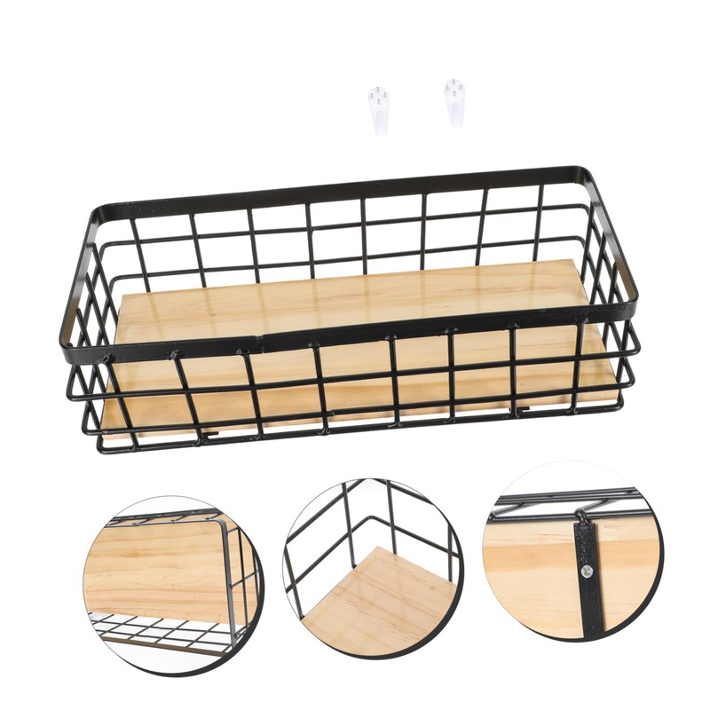 -Material: Iron, Wood shelf storage basket