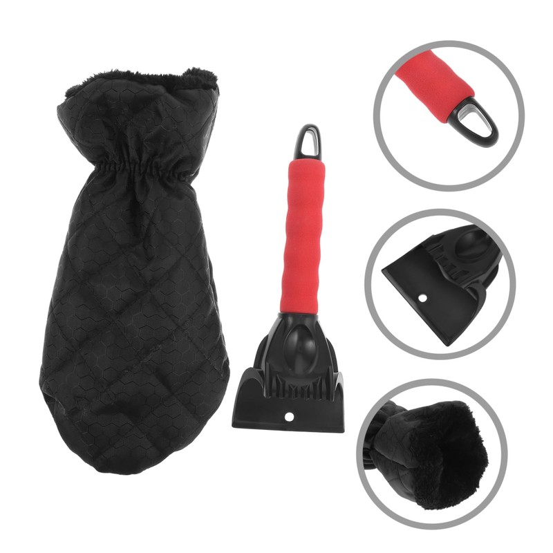 Mobestech 1set Ice Scraper Mitt with Gloves Snow Brush for Car Essentials Eff...