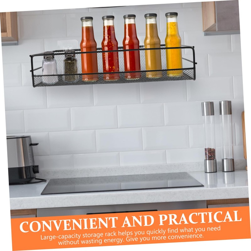 - No damage to walls with easy installation. Large capacity for organizing different kitchen items wall mount shelf.