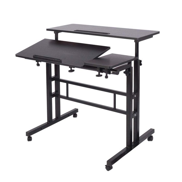 Mobile Laptop Sit-Stand Desk, Soges Height Adjustable Standing Tiltable Top Desk, 31.5 inch Stand Up Computer Desk for Home Office, Small Rolling Desk for Small Space, Black ZS-101-2BK