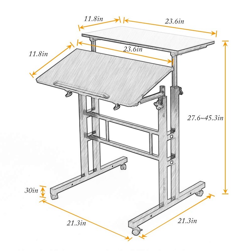• 【Mobile Desk Dimensions】L23.6 * W(11.8-23.6) * H(27.6-45.3)inches. L60 * W(30-60) * H(70-115)cm. Table weights about 15.4 lbs (7kg). Maximum load capacity 88 lbs (80kg).