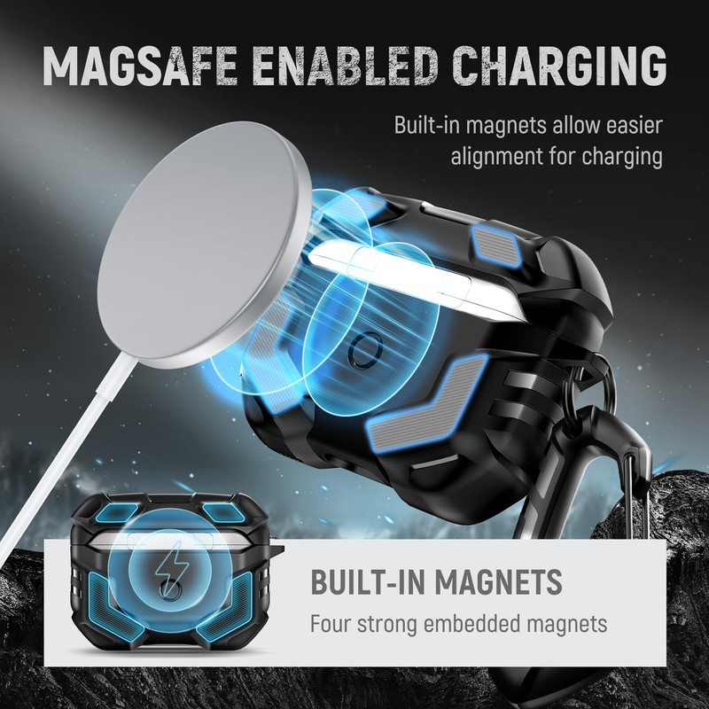 • [Magnetic Locking Lid Design & Full Body Protective Case]: With 4 strong magnets between top and body, which creates a secure, firm lock, so you never have to worry about the lid coming loose or your AirPods Pro popping open at the wrong time.Made of military-grade resistant TPU material, Shock-absorbing polymer and Air-Guard corners which provides all-round protection for your AirPods Pro (2023/2022/2019) against drops, scratches and bumps