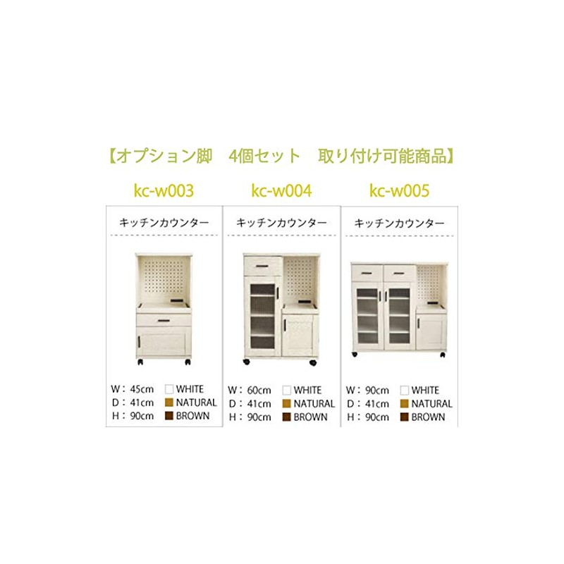 - Other specifications: moca company Roundear kitchen counter kc-w003 (width 17.7 in. (45 cm)), kc-w004 (width 23.6 in. (60 cm)), kc-w005 (width 35.4 in. (90 cm)); Option of custom feet; Note: Assembly required (please prepare a Phillips screwdriver); Original product of noconoco kitchen.