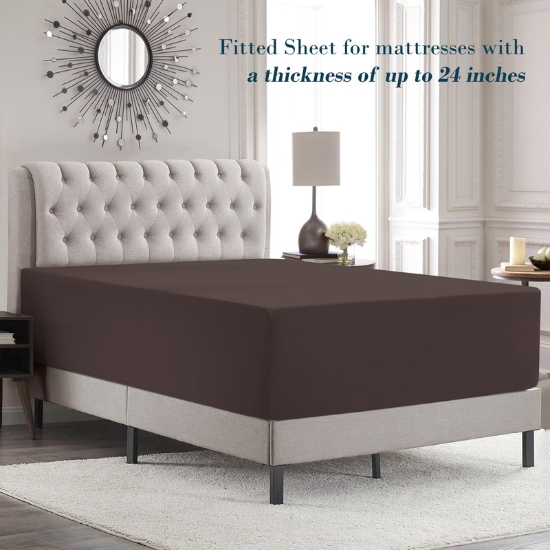 - EXTRA DEEP POCKETS: Designed for mattresses 18 to 24 inches thick, the fitted sheet stays securely in place and the extra deep pockets are perfect for keeping glasses, remotes, phones, books, or other bedside essentials within easy reach. Crafted from microfiber this sheet set is softer than cotton, this ultra-soft, breathable fabric provides a skin-friendly, luxurious feel for a restful night’s sleep.