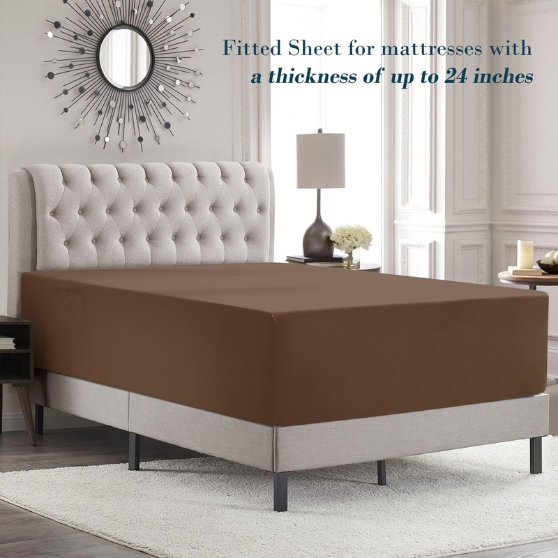 - EXTRA DEEP POCKETS: Designed for mattresses 18 to 24 inches thick, the fitted sheet stays securely in place and the extra deep pockets are perfect for keeping glasses, remotes, phones, books, or other bedside essentials within easy reach. Crafted from microfiber this sheet set is softer than cotton, this ultra-soft, breathable fabric provides a skin-friendly, luxurious feel for a restful night’s sleep.