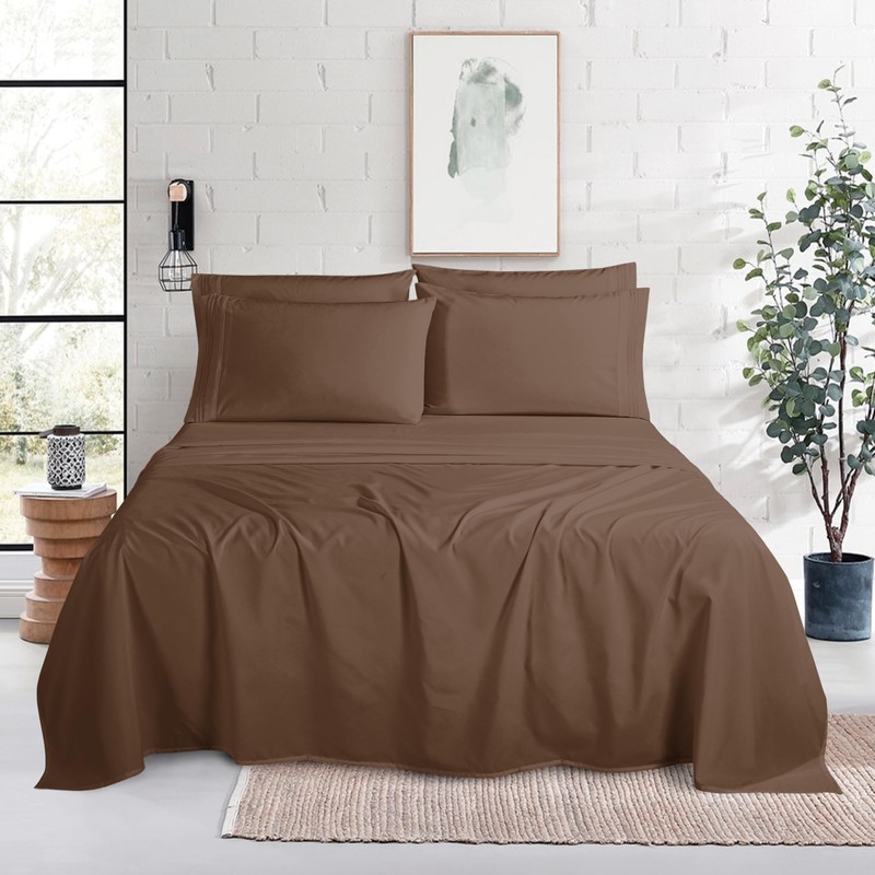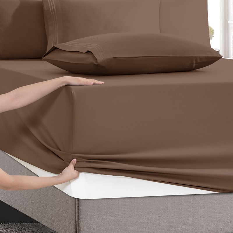 Mocassi Luxury 6-Piece Sheet Set, Ultra Soft 1800 Premium Hotel Quality Microfiber Sheet Set, Fits Mattresses Up to 18 to 24 Inches Extra Deep Pocket - Breathable and Secure Fit, Queen, Taupe