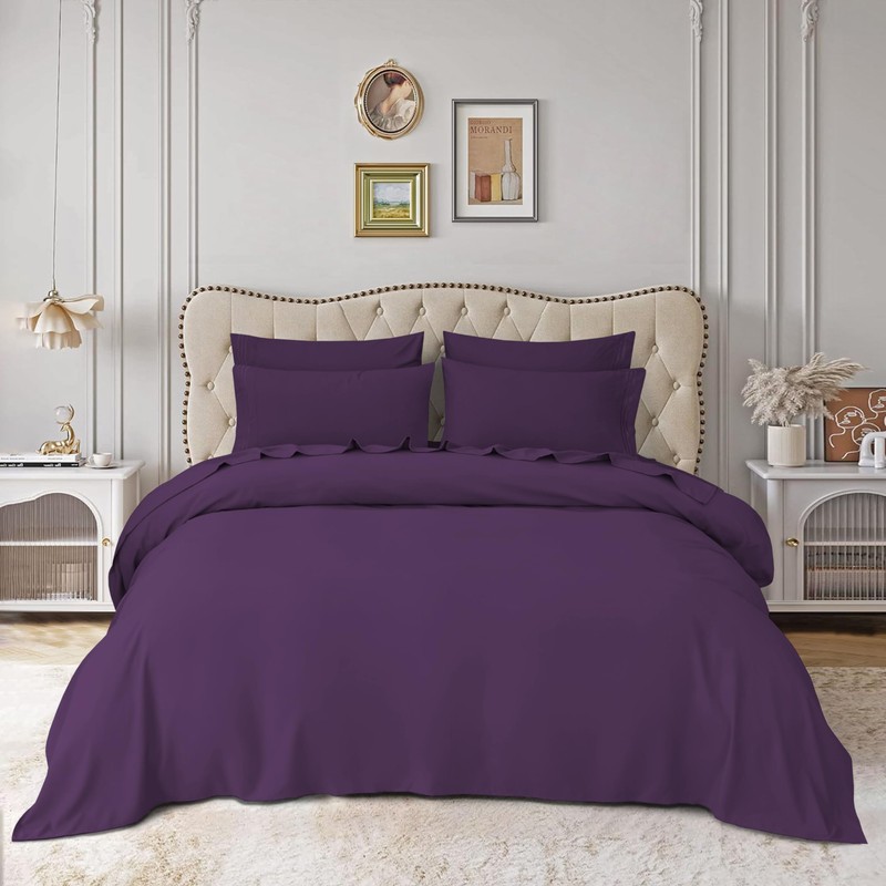 Mocassi Luxury Queen 4-Piece Sheet Set - 1800 Premium Hotel Quality - Easy-Fit, Wrinkle, Fade Resistant Bed Sheets and Pillowcases - All Around Elastic Fitted Sheet, Deep Pocket, Purple