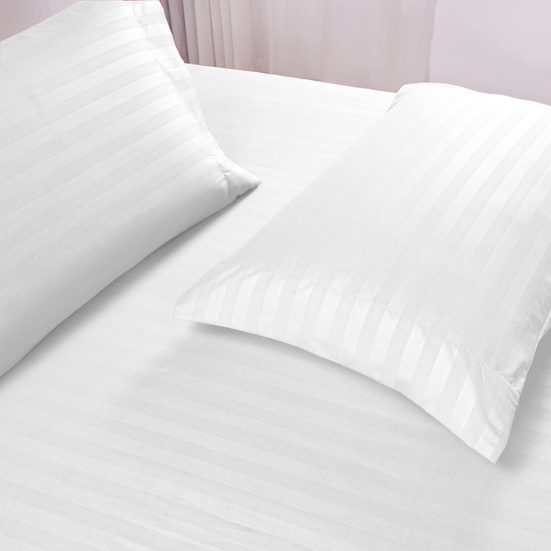 Mocassi Queen Stripe Sheet Set - Luxury Hotel 1800 Premier Bedding Sheets & Pillowcases - Ultra Soft Breathable & Cooling Bed Sheets - Wrinkle Resistant - 6 Piece Set - Queen, White