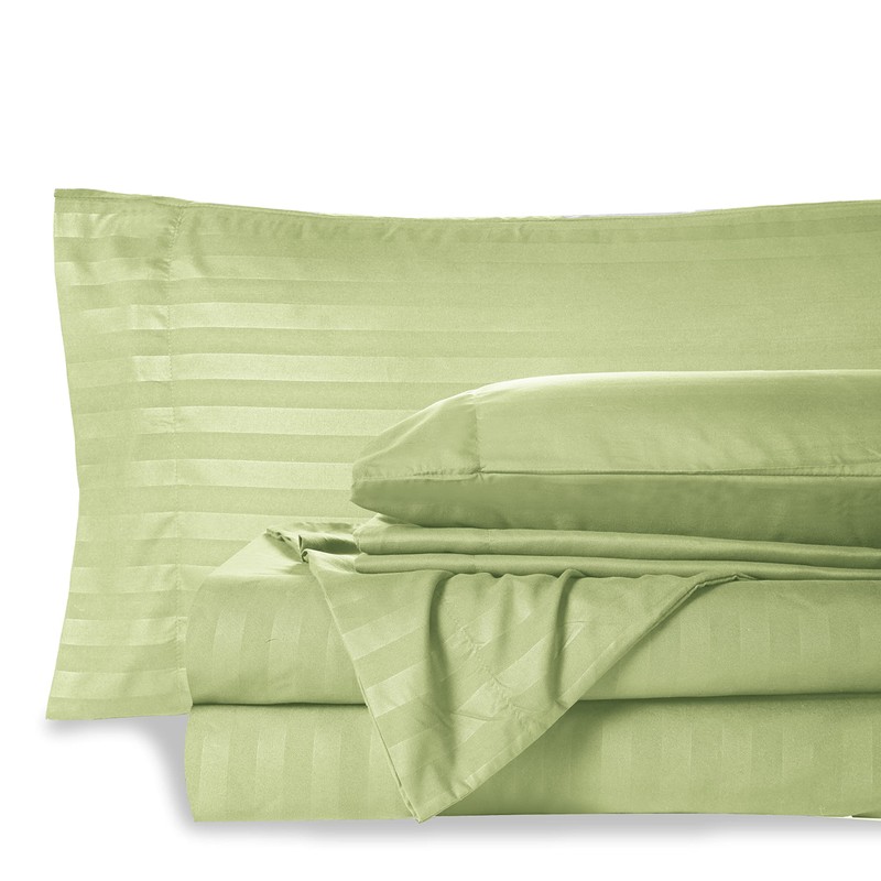 Mocassi Twin Stripe Sheet Set - Luxury Hotel 1800 Premier Bedding Sheets & Pillowcases - Ultra Soft Breathable & Cooling Bed Sheets - Wrinkle Resistant - 4 Piece Set - Twin, Sage Green