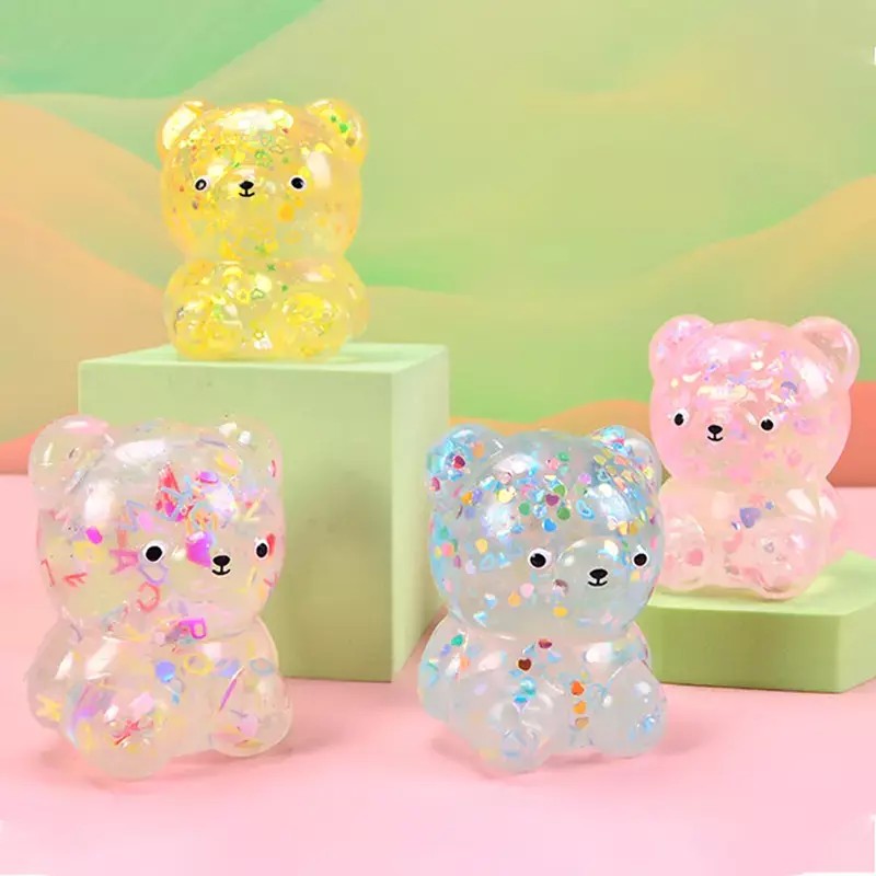 Mochi Trading Glitter Teddy Bear Gel Squishy Fidget Toy for Anxiety & Stress Relief Relax Ball - Baby Blue