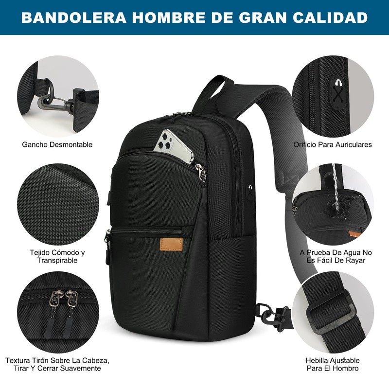 Mochila Cruzada para Hombre Antirrobo Bolso para Hombre Ligera y Impermeable Mariconera Bandolera Hombre Grande Bolso de Pecho Sling Bag para Caminar,Viajar, Actividades al Aire Libre, Negro