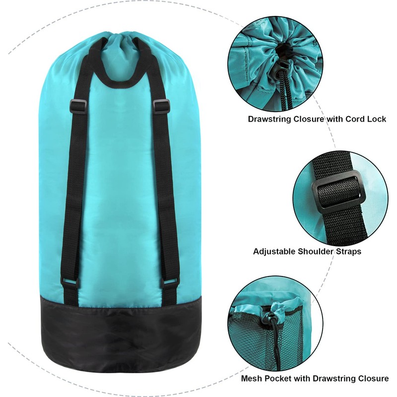 Mochila de lavandería con correas, resistente para estudiantes universitarios, viajes, bolsas de lavandería portátiles (turquesa)