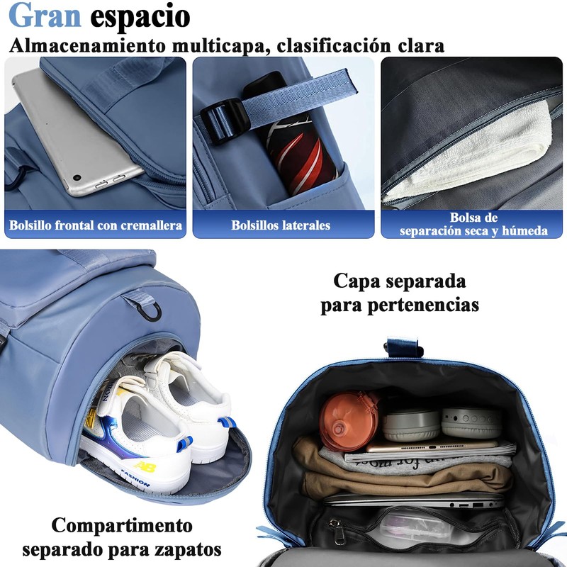 1 compartimento separado para zapatos (puede guardar su ropa sucia, zapatos de repuesto y pantuflas)