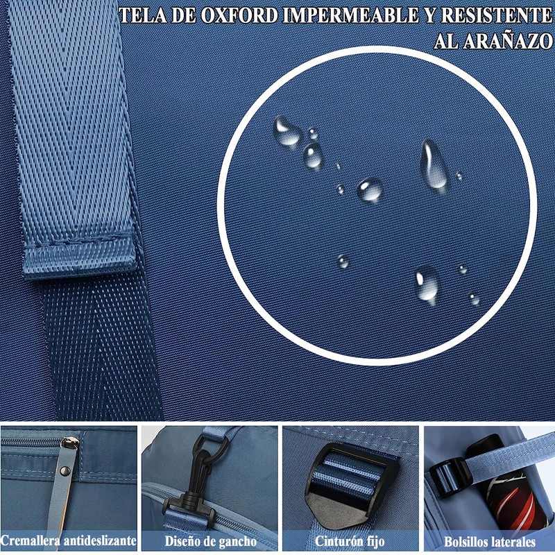 - 👜 Bolsa de viaje con separación de seco y húmedo: la bolsa de lona ofrece un espacioso compartimento principal para guardar su ropa y pertenencias. El material impermeable de alta densidad lo ayuda a mantener separados los artículos húmedos y secos, un bolsillo impermeable forrado de PVC con cremallera para ropa mojada o toallas y trajes de baño. Tamaño: (H*W*T) 45x25x25cm, 0.4 kg de peso.