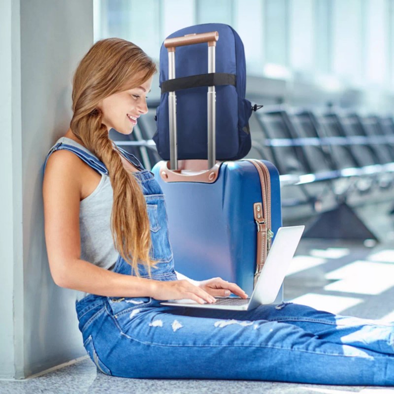 5. Trolley de equipaje con correas. Correa en la espalda para fijar la mochila al equipaje.