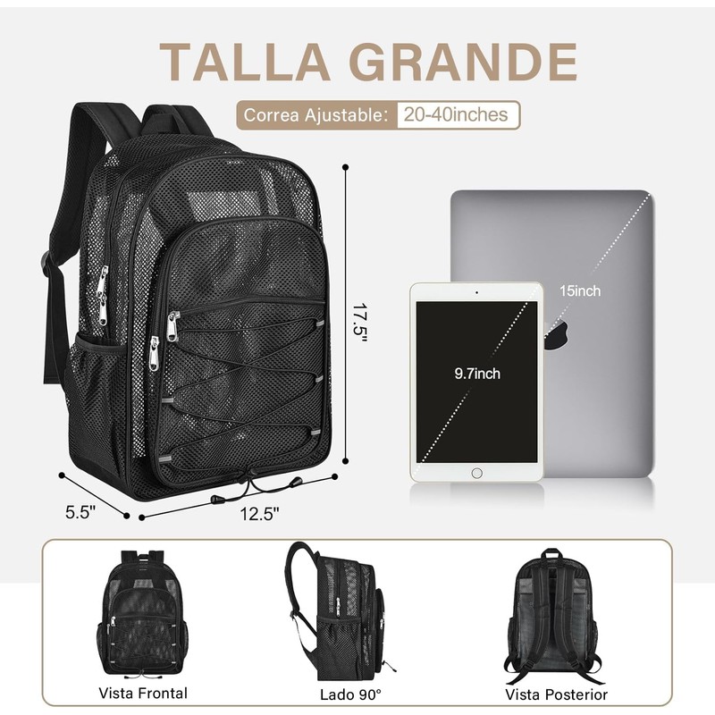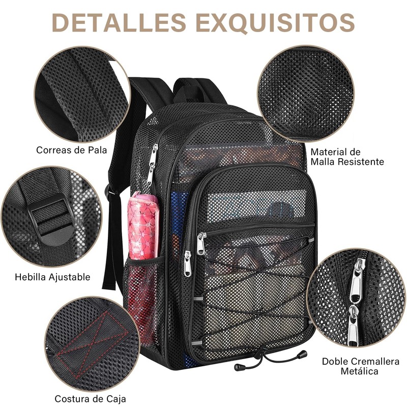 - 【Ideal para Múltiples Ocasiones】Mesh mochila es una excelente opción para uso escolar. No sólo cumple con las políticas de seguridad de la escuela al permitir una fácil inspección del contenido, sino también para viajes, senderismo, natación y otras actividades al aire libre, proporcionando una solución de transporte confiable.
