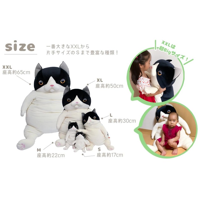 • 【全部そろえて並べちゃおう! 】もちシリーズは手のひらに載るSサイズ、子猫くらいのMサイズ、大人ねこくらいのLサイズ、巨大ねこのXLサイズ、思わず抱きしめたくなっちゃうような特大XXLサイズがあります。ねこ、いぬ、ぶた、はりねずみ、くまに加え、水族館で大人気のカワウソも仲間入り♪お気に入りの子を見つけるもよし、ぜーんぶそろえて、ベッドの上を動物園にしちゃうもよし! 楽しみ方は、無限大です。