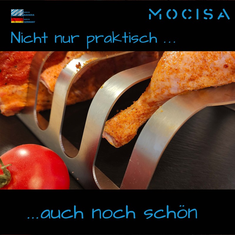 mocisa Rib-Rack Size S (4) | Rib Holder with Handles | The Professional Tool for Rib Grilling | Stainless Steel | Food Safe | Made in Bavaria | For 4 Juicy and Delicious Spare Ribs |