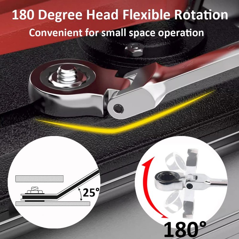 - Widely used: The 180 degree flexible head design ideal for most light repairs and easy access to bolts, even in the densest of spaces, make your emergency repair a breeze. Such as motorcycle repairs, car repair, bicycle repair, machine repairs, home repairs, etc.