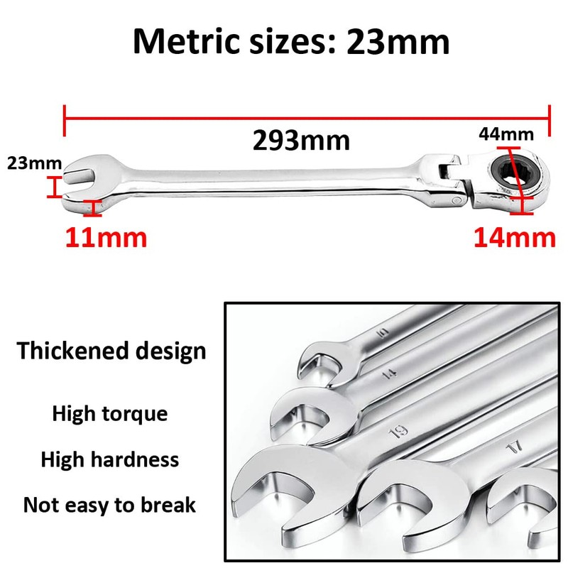 MOCNT Flexible Combination Spanner Ring Spanner Set Spanner Ring Ratchet Spanner Set Open-End Spanner Joint Ring Spanner Set Ratchet Metric 23 mm