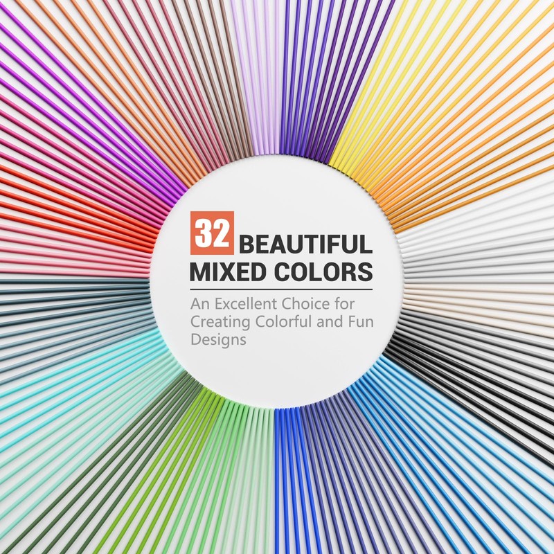 - 32 Beautiful Mixed Colors This pack includes 32 vibrant and solid colors, providing a wide variety of options for your 3D drawing and art projects. These assorted colors make it an excellent choice for creating colorful and fun designs, perfect for kids, DIY lovers, and art enthusiasts.