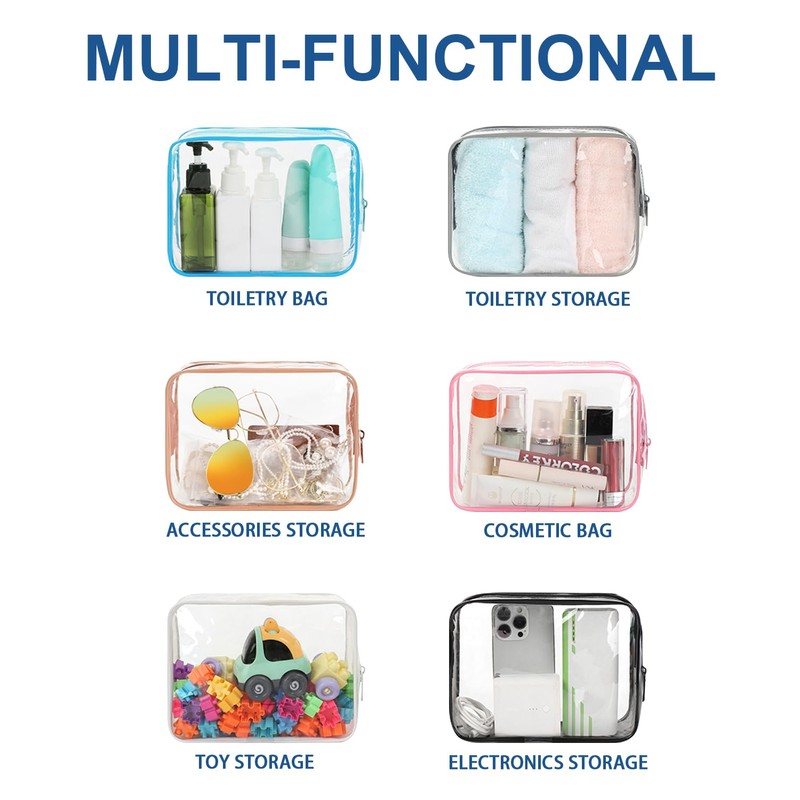 - CLEAR, REUSABLE - The clear makeup bag is made of high quality PVC material and strong heavy duty zipper.The travel bags provide long-term using experience and protect your items from water, dust and sand. No more disposable plastic bags, kind to our earth