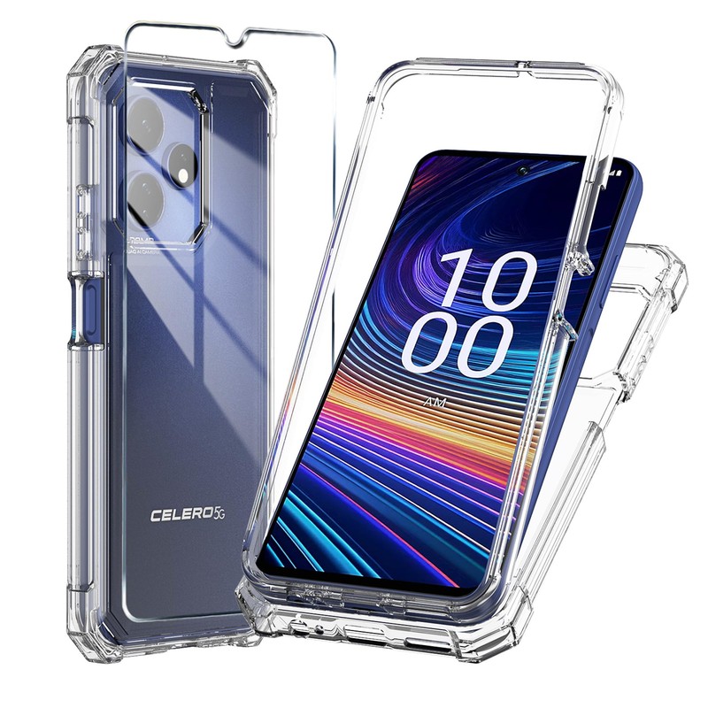 Mocotto for Boost Mobile Celero 5G+ Plus 2024 (3rd Version) Case with Tempered Glass Screen Protector,Slim Soft Silicone Full-Body Protective Case (Clear)