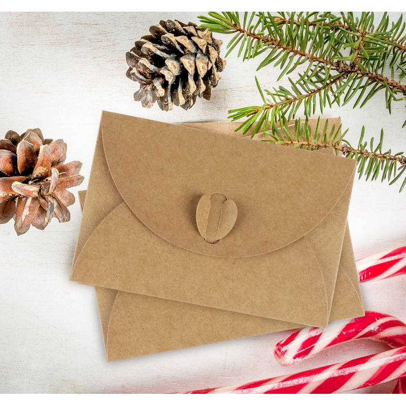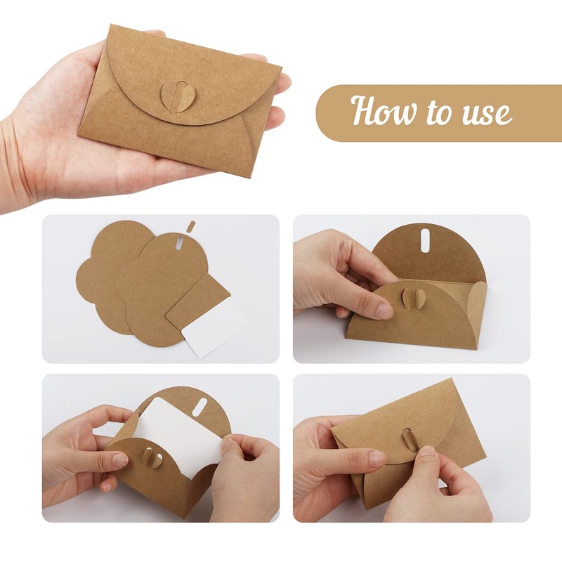- Mini envelope set, 100 pieces vintage kraft paper envelopes with heart closure + 100 pieces blank paper cards.