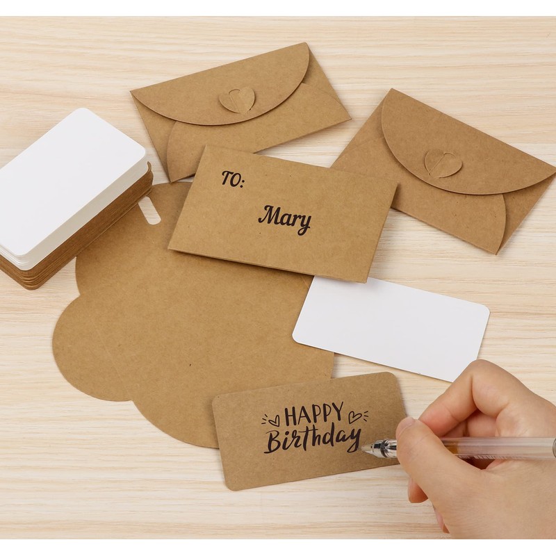 - There are 50 white cards and 50 brown blank cards, you can write on both sides of the card, you can write your wishes, customize your envelope with special text, express your feelings with different styles or design your favorite cover.