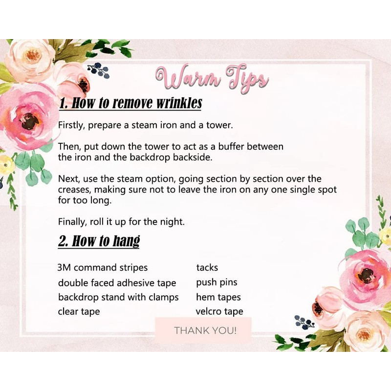 - ❤【REMOVE WRINKLES】Firstly, prepare a steam iron and a towel. Then, put down the towel to act as a buffer between the iron and the backdrop backside. Use the steam option, going section by section over the creases, making sure not to leave the iron on any one single spot for too long. Finally, roll it up for the night.